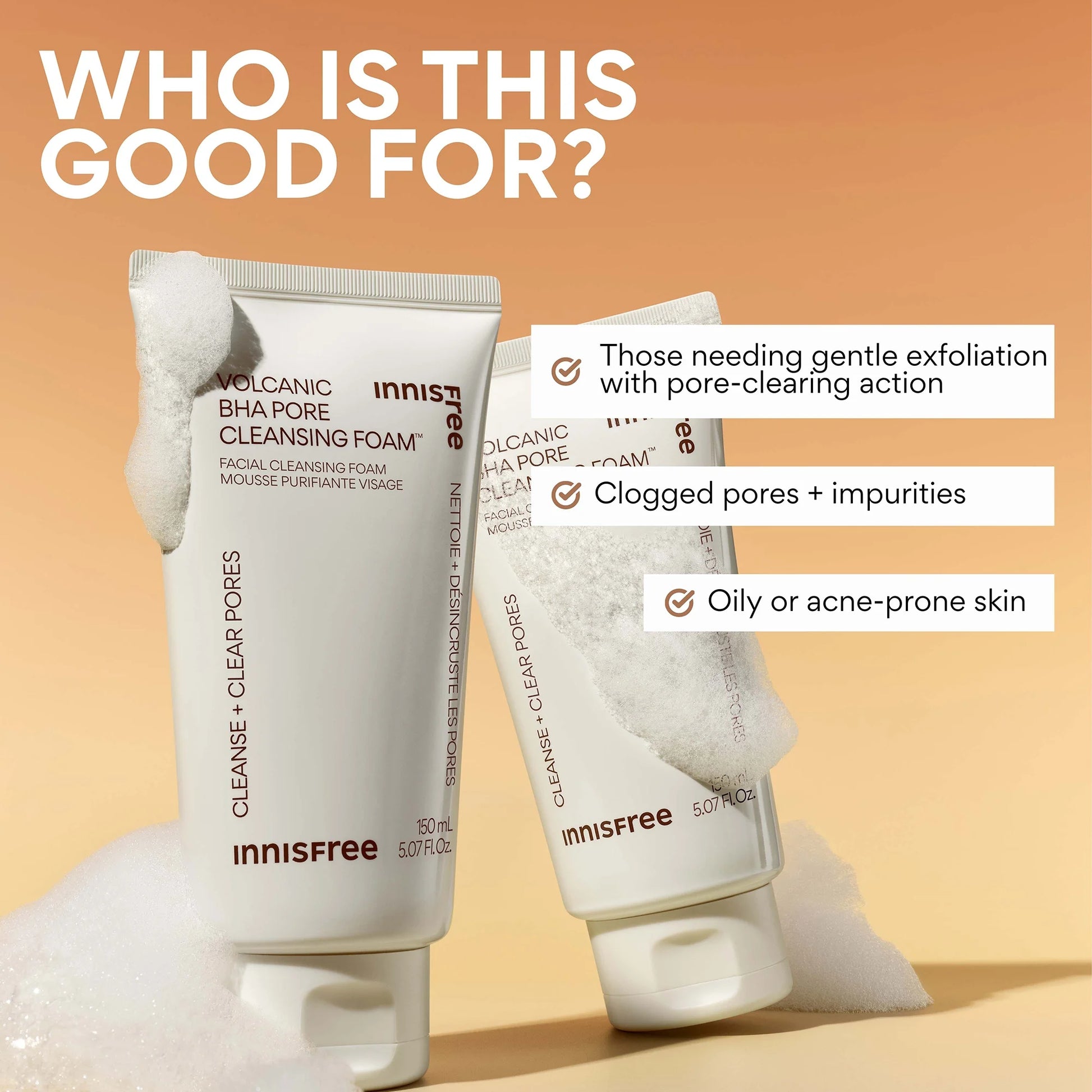 Want that fresh clean feeling you get after a facial? Cue the Volcanic BHA Pore Cleansing Foam (150ml) innisfree.
